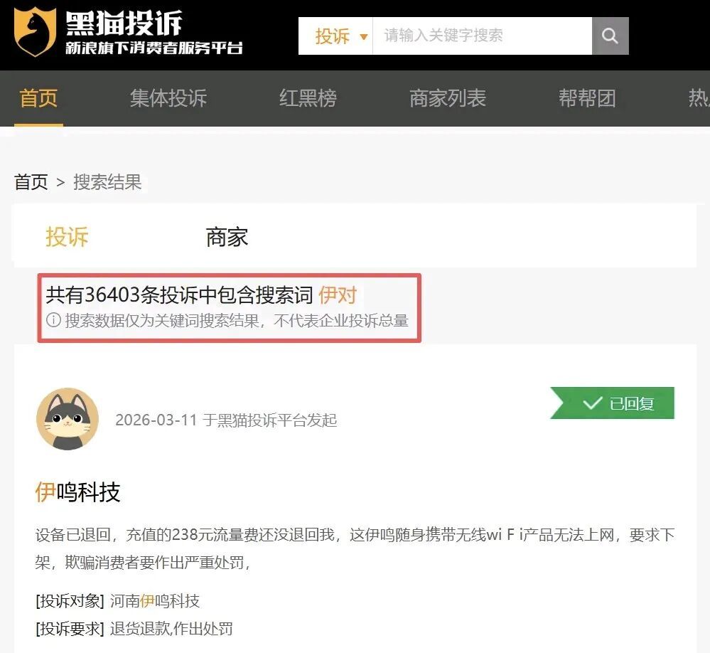在黑猫投诉平台上,“伊对”App的累计投诉量已超过千条,“诱导消费”“虚假宣传”“退款难”是最高频的投诉关键词。